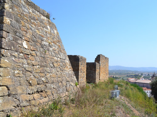 The walls of the first enclosure remain, in limestone masonry, reinforced by seven quadrangular cubes and another tower highlighted on the west side (keep tower), facing the Monastery. To the east, there is a Barbican tower, between the inner enclosure and the oval-shaped Barbican, reinforced, on the west side, by four turrets (two of which are semicircular).