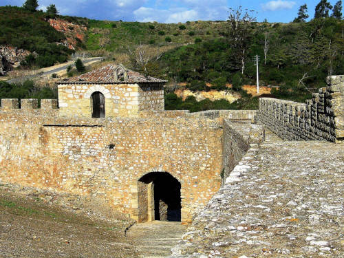 From that period onwards, Alenquer became an integral part of the queens' heritage, being successively donated to the sovereigns of the kingdom. The construction works of the complex that currently remains must have been located at the beginning of the 14th century, when Queen Saint Isabel owned the town. In fact, the scarce material remains preserved indicate a fully Gothic chronology. The plan of the citadel is generally oval and there is no evidence that it included an isolated keep in the courtyard, but rather one attached to one of the wall fronts. The fence was surrounded by a battlement protected by quadrangular Battlements and, close to the river, apparently with defensive functions over an old spring that supplied the population, stands the Torre da Couraça. This must be from a later chronology than the construction of the castle and is an imposing structure, over 18 m high, which was significantly modified in the following centuries and used for private housing purposes.
