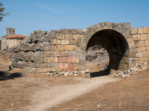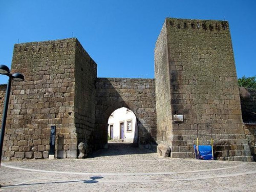 The Porta da Vila is guarded by two pre-Roman granite zoomorphs (4th century BC), representing pigs or wild boars, which had their snouts cut off "because they were frightened by the beasts that repaired them."